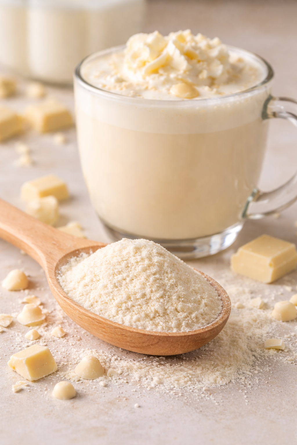 Шоколадная смесь изготовлена из настоящего натурального белого шоколада и сахара — без лишних добавок. Она обладает нежным, сливочным вкусом и деликатной сладостью. Идеально подходит для приготовления белого горячего шоколада, латте, десертов, выпечки или в качестве ароматной добавки к напиткам и сладким рецептам.